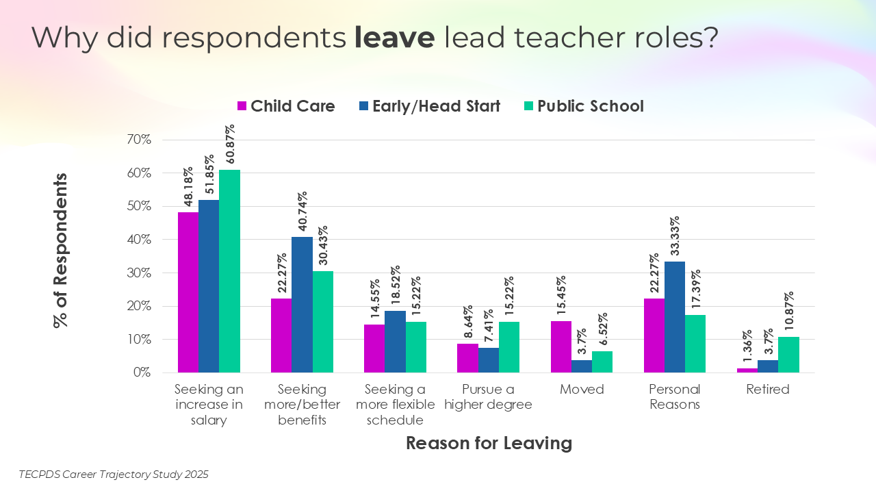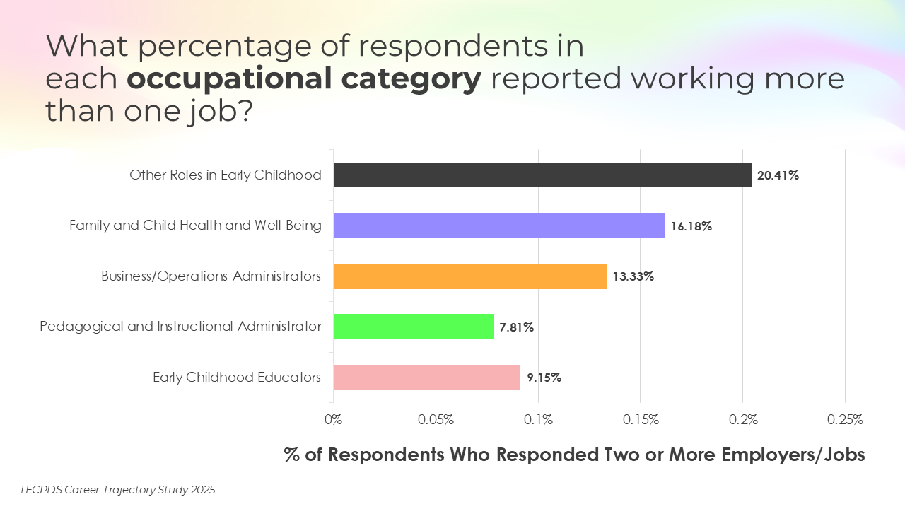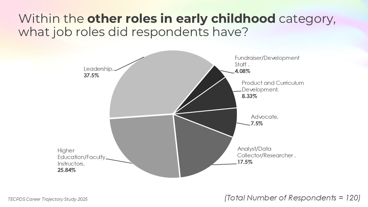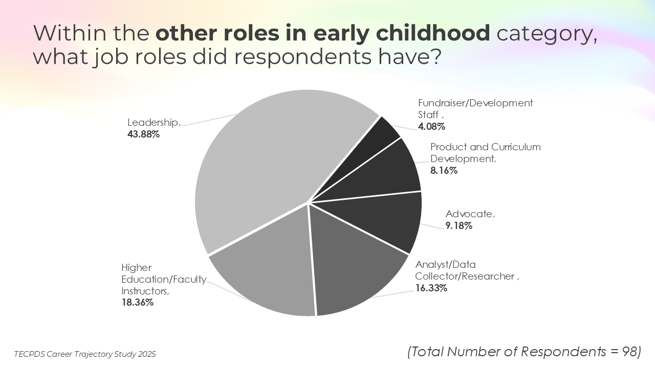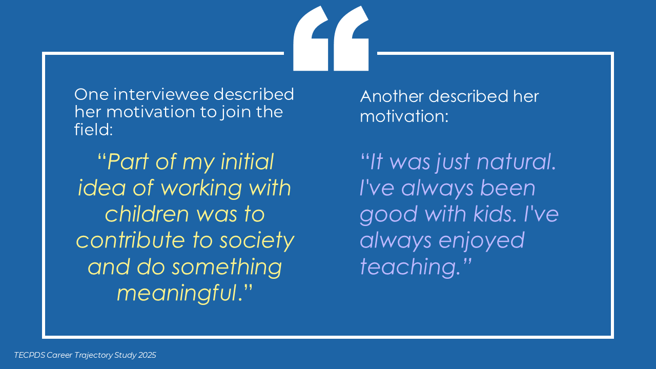 Our goal is to support individuals with an interest or expertise in supporting young children to identify related career opportunities that allow them to contribute to the field. This understanding can also inform system-level and employer-driven strategies that promote workforce stability, support professional growth, and strengthen long-term impact across sectors serving young children.