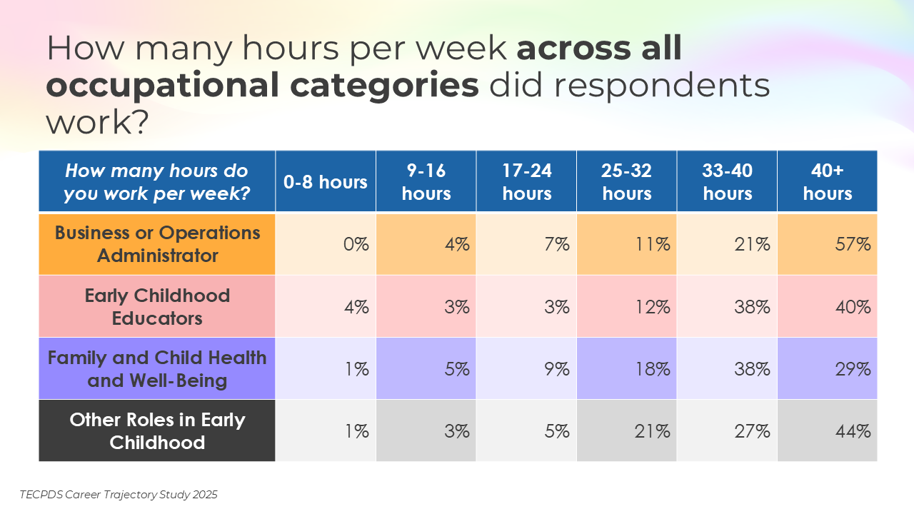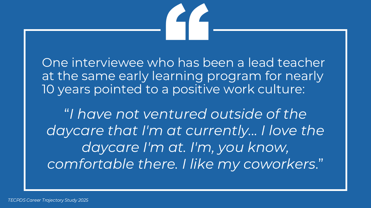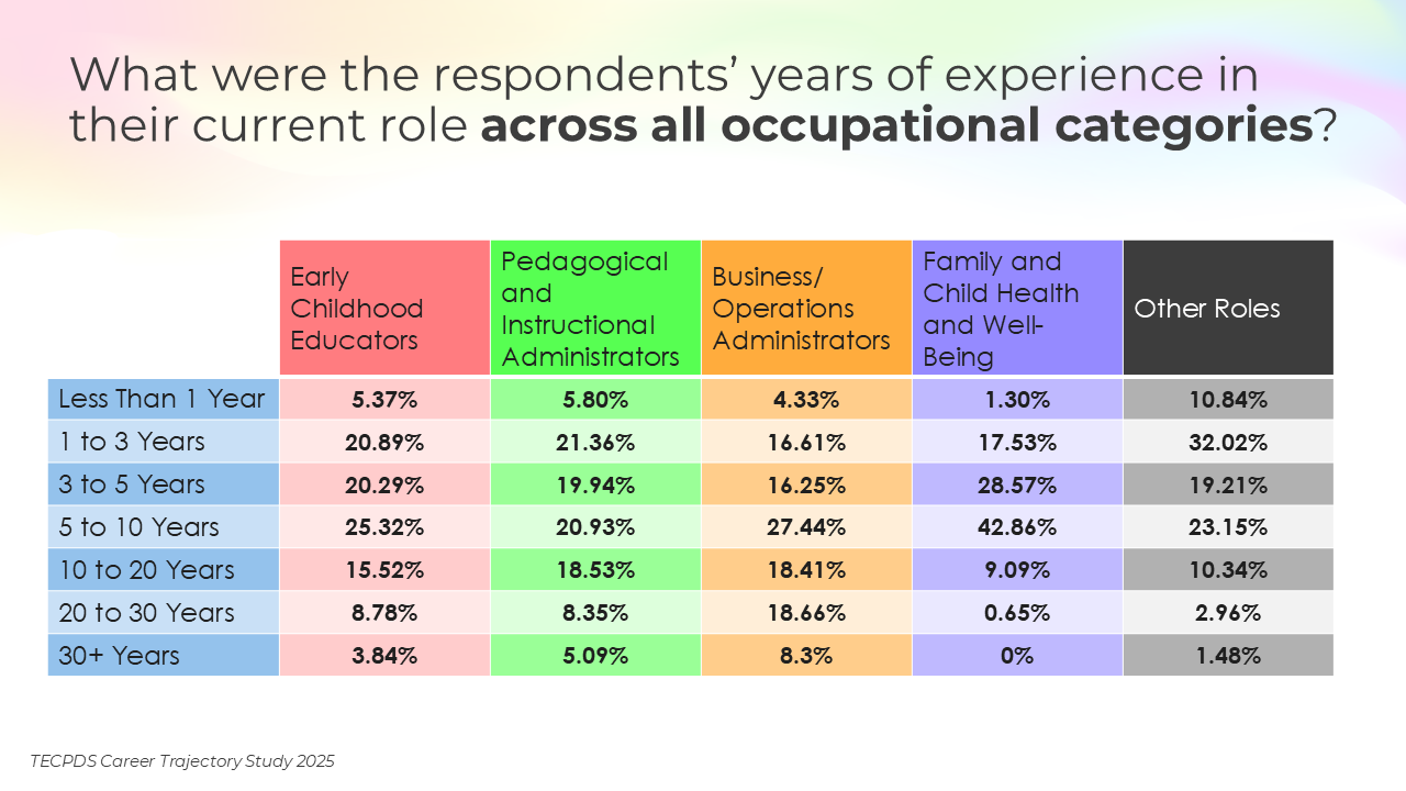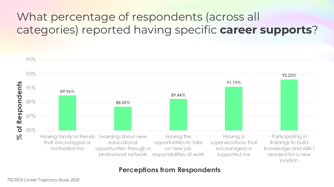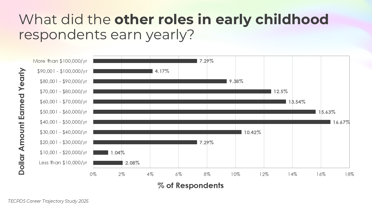Our goal is to support individuals with an interest or expertise in supporting young children to identify related career opportunities that allow them to contribute to the field. This understanding can also inform system-level and employer-driven strategies that promote workforce stability, support professional growth, and strengthen long-term impact across sectors serving young children.