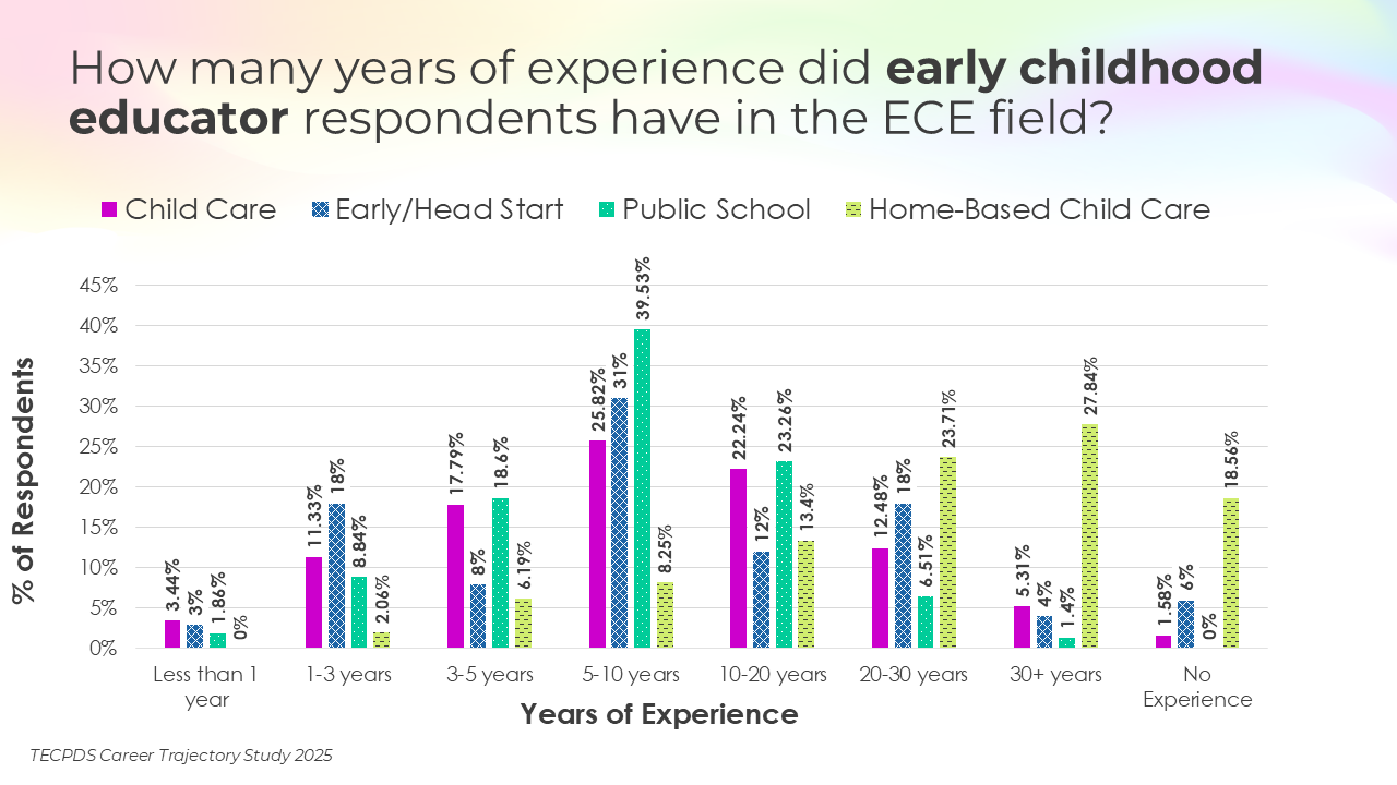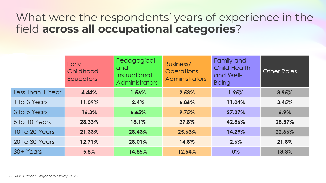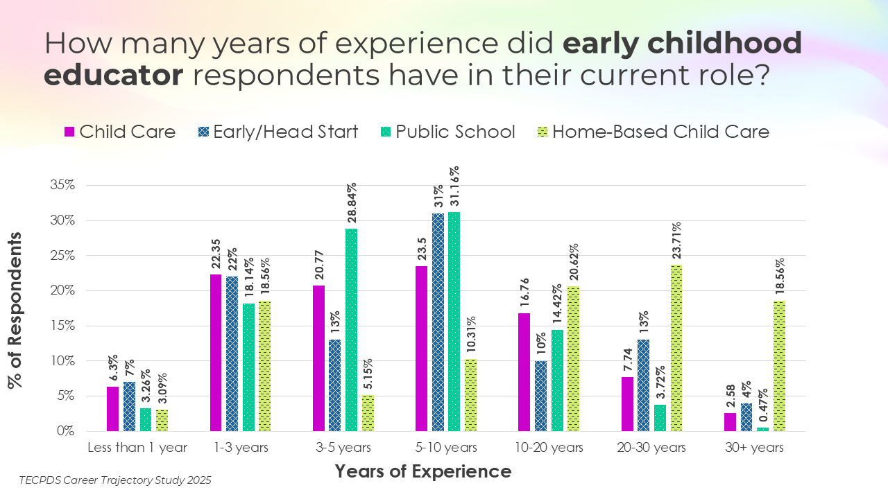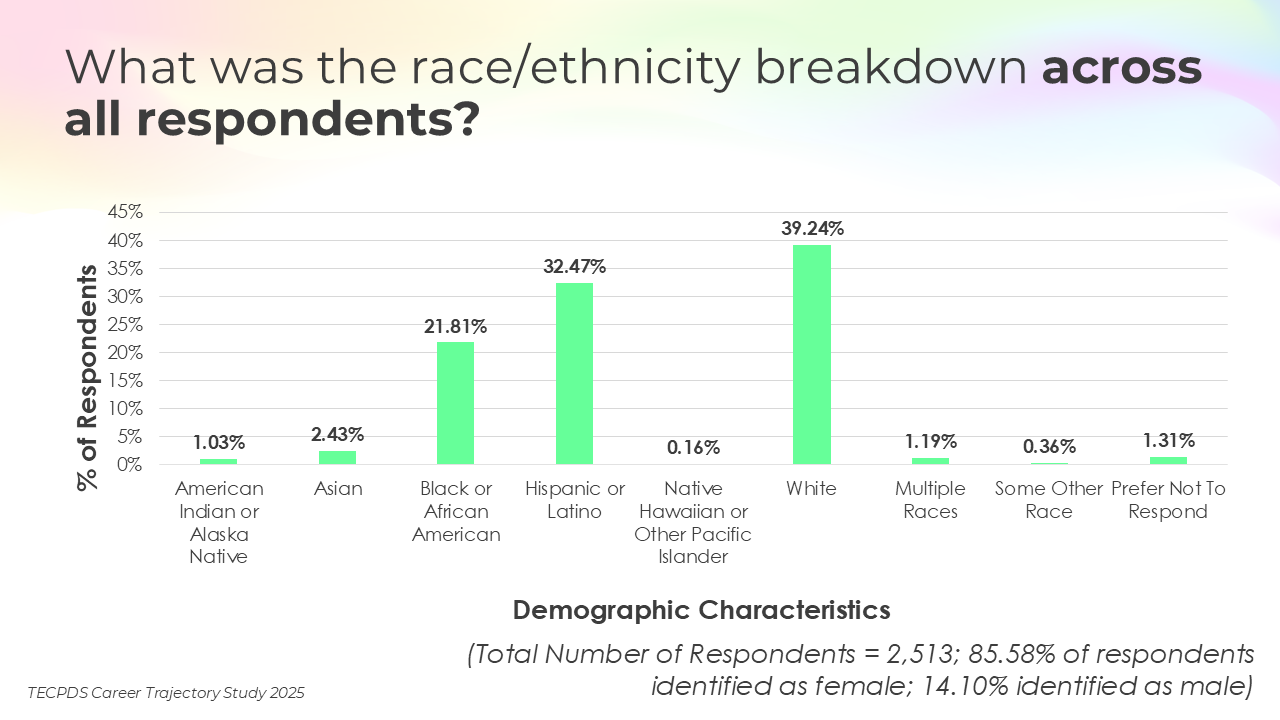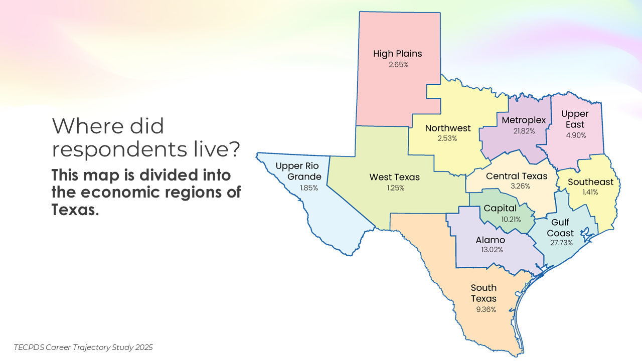 TECPDS, with support from the Texas Workforce Commission, conducted this study to deepen understanding of the characteristics, roles, and professional experiences of individuals working across the early childhood sector.