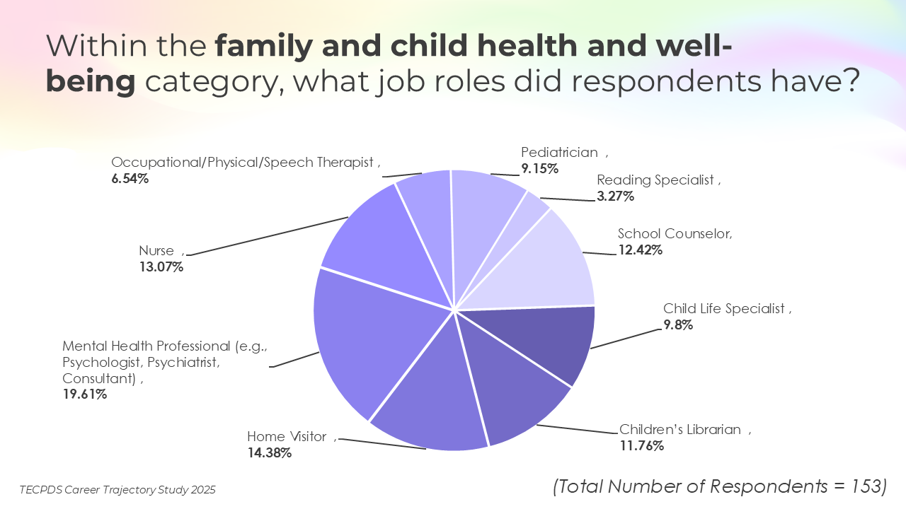 This study included roles across multiple sectors that support the development and health of young children, including education, healthcare, social services, and early intervention. By examining a wide range of positions, we aim to understand the career pathways and trajectories available within this interconnected field.